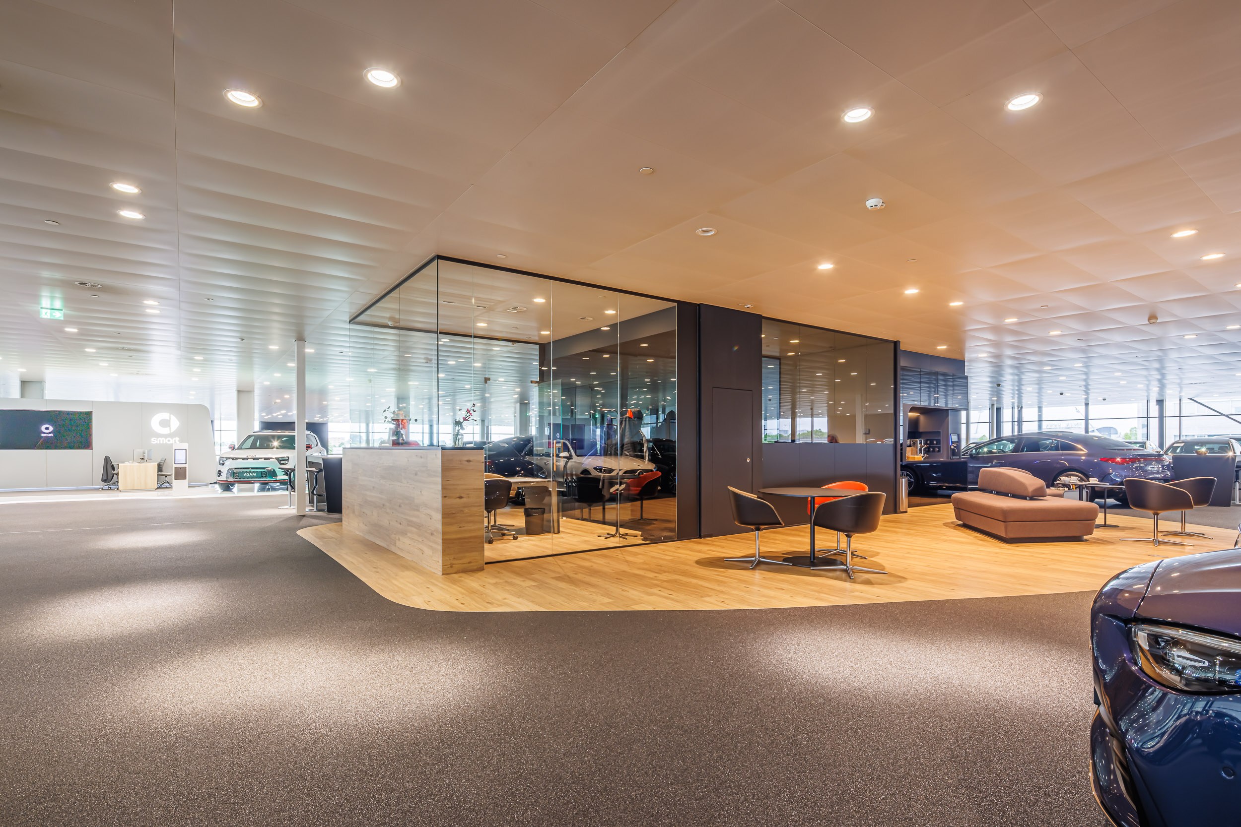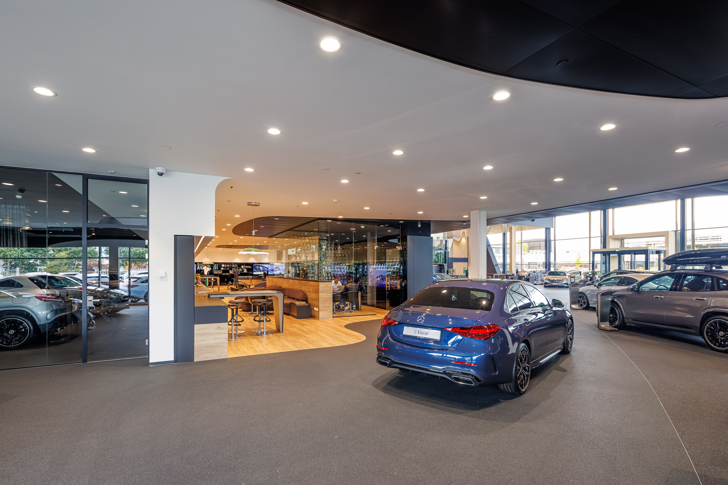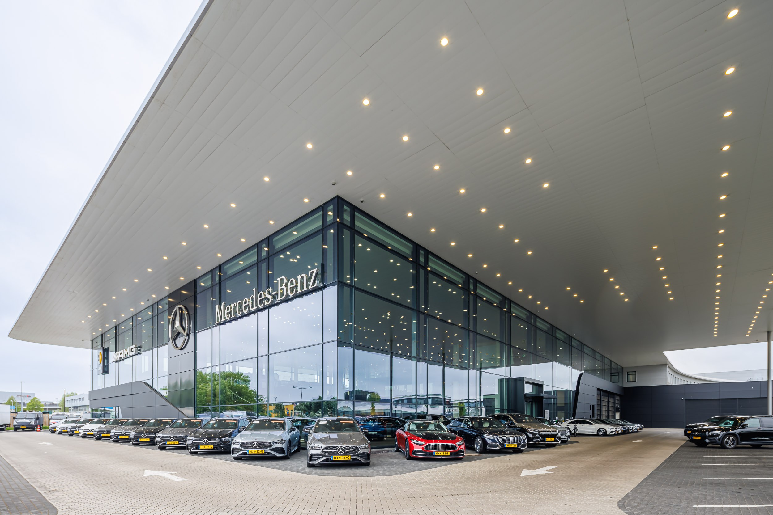 Voor de Mercedes-Benz showroom (flagship store) in Den Haag is gekozen voor een volledig LED-verlichtingsconcept dat zowel on-off als DALI-gestuurde armaturen bevat. Deze slimme combinatie zorgt voor energiezuinige en dynamisch regelbare verlichting, afgestemd op de uitstraling van het merk.